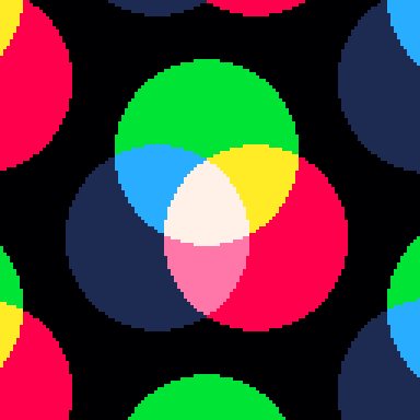 fillp(23130)e="1224499aaff77"v=cos::s::cls()u=t()/24w=sin for y=0,127 do z=y/999j=v(u+z)g=.2*w(j-u*3+z)k=14+3*v(w(z*4-u*9))for l=0,15 do i=l/4x=64+16*w(j)+32*v(-g%.25+flr(i)/4)a=x+k*v(i+g)b=x+k*w(i+g) if(a>b)d=flr(8/k*(a-b)+1)rect(a,y,b,y,"0x"..sub(e,d,d+1))end end flip()goto s